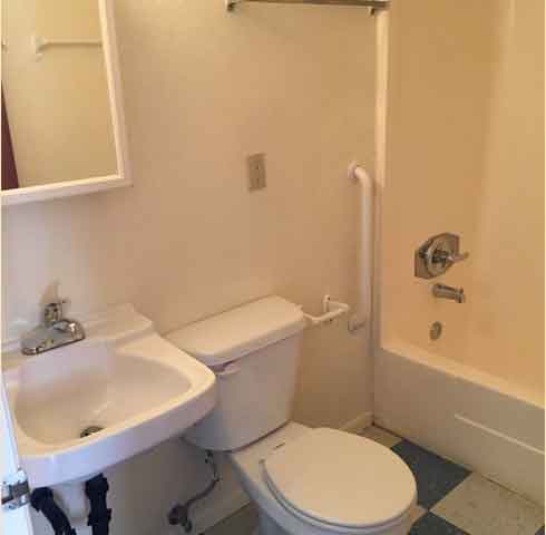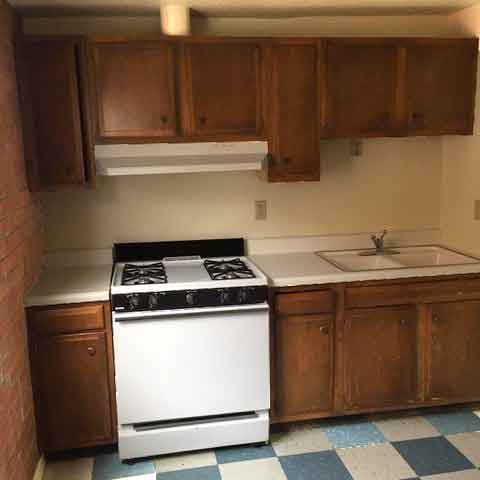 This unit is a Giant studio in a small single story apartment building with two rooms consisting of a very large 14x16 room for living and sleeping, and a full kitchen 10x14.