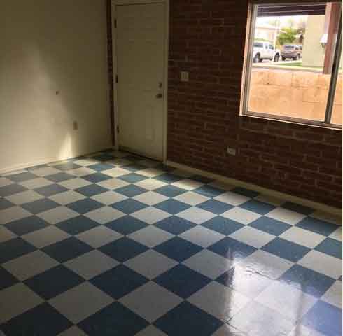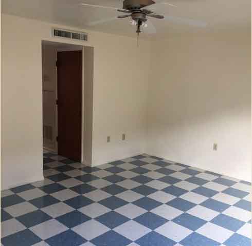 The flooring is vinyl composition tile, The unit has Air Conditioning and heat. The gas range and the refrigerator are included but the unit is otherwise unfurnished.